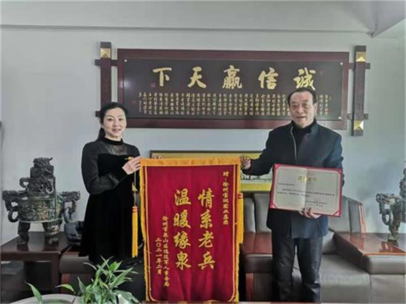 “情系老兵,溫暖緣泉”,泉山區(qū)退役軍人事務局特于2021年2月向集團頒發(fā)了榮譽證書與錦旗。