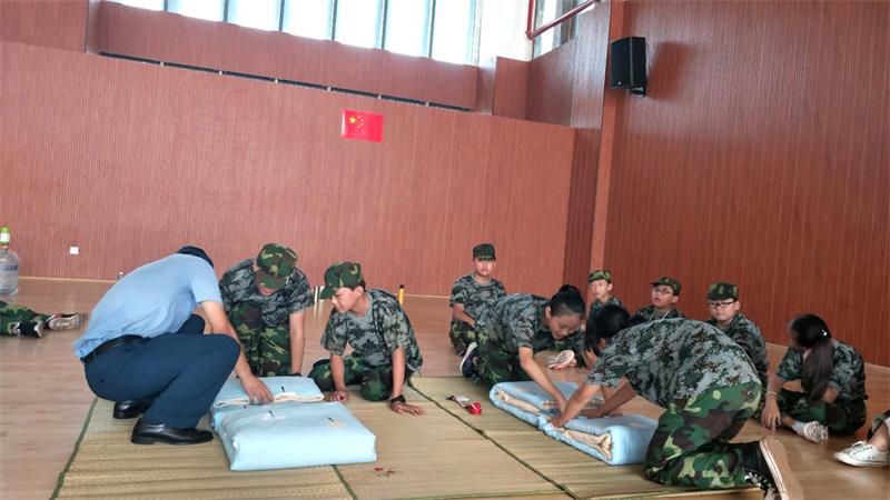 在內(nèi)務(wù)整理訓(xùn)練環(huán)節(jié),教官言傳身教,一絲不茍。短短幾天的時間,給孩子們帶來了令人欣喜的變化。 緊張有序的6天軍訓(xùn),在同學(xué)們嘹亮的歌聲中結(jié)束了,增強了集體榮譽感、團隊意識、合作意識、國防意識,鍛煉了體魄,磨礪了意志,增強了毅力,新時代學(xué)子的“精氣神”英姿勃發(fā)。