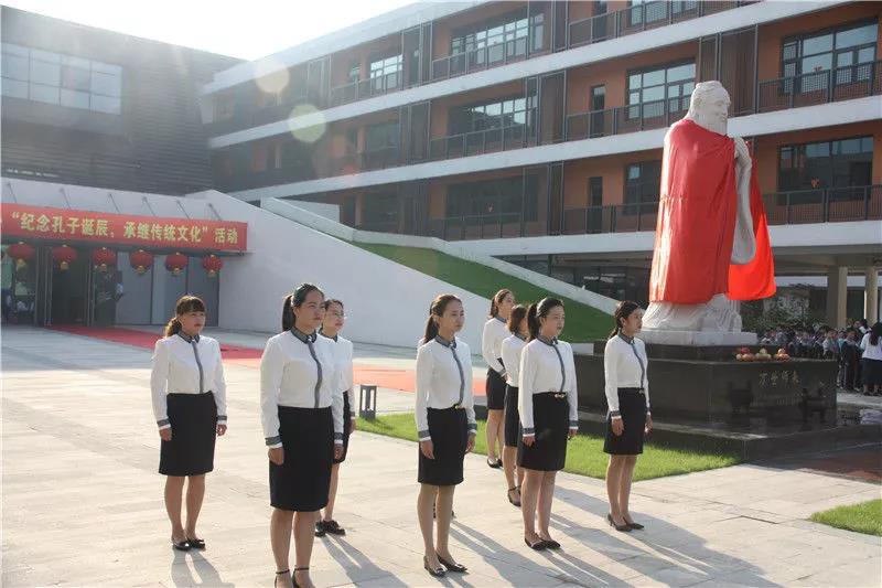 老師們排著整齊的隊(duì)伍,聚集在孔子像前,在古樸悠揚(yáng)的音樂聲中拉開了祭孔典禮的序幕。