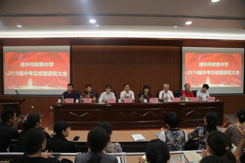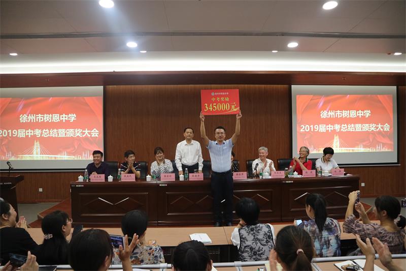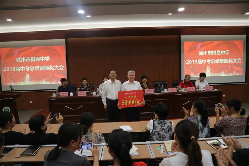 2019年9月27日下午,徐州市樹恩中學2019屆中考總結(jié)暨頒獎大會在高鐵校區(qū)第一階梯教室隆重舉行,全體初中教師和高中部分教師參加了會議。劉永生校長主持大會。薛淑萍校長作了總結(jié)報告,對2019年中考工作進行總結(jié),對2020年中考進行動員部署。徐州市寶潤實業(yè)集團張愛萍董事長代表集團對取得優(yōu)異成績的中考團隊頒發(fā)了獎金。原九年級部主任石院老師、現(xiàn)九年級部主任竇道洲老師、高鐵校區(qū)八年級部主任盧振錦老師、高一年級部主任程建軍老師分別代表年級部老師作了大會發(fā)言。