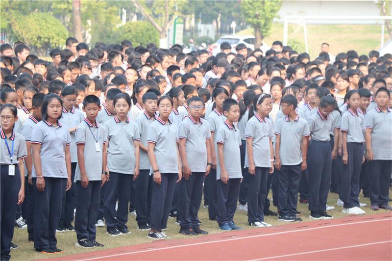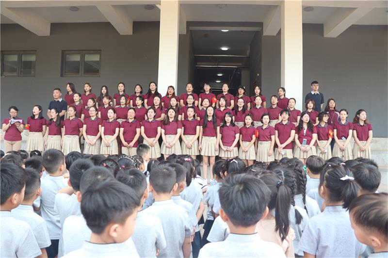 樹恩附小的全體師生與初中部和高中部大哥哥、大姐姐們一起參加了新學(xué)期的第一次升旗儀式。