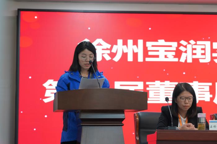 徐州寶潤實(shí)業(yè)上市集團(tuán)黨委常委、辦公室主任、人力資源部長郝雪雪宣讀候選人簡歷。