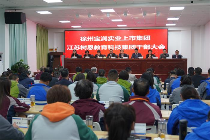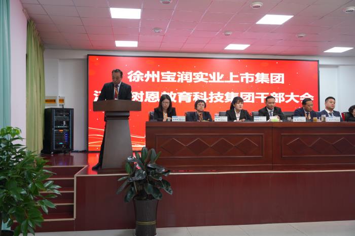 2020年10月10日,徐州寶潤實業(yè)上市集團(tuán)、江蘇樹恩教育科技集團(tuán)干部大會在徐州市樹恩外國語小學(xué)舉行。徐州寶潤實業(yè)上市集團(tuán)董事局主席、董事長張愛平出席會議并作重要講話。集團(tuán)董事局成員及下屬產(chǎn)業(yè)集團(tuán)經(jīng)營團(tuán)隊、職能部門主要負(fù)責(zé)人參加會議。