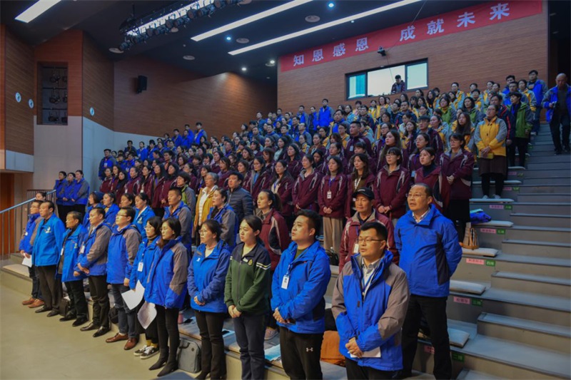徐州市樹恩中學(xué)高鐵校區(qū)副校長兼辦公室主任、財務(wù)總監(jiān)張雯倩宣讀了《江蘇樹恩教育科技集團(tuán)學(xué)校行動綱領(lǐng)》。