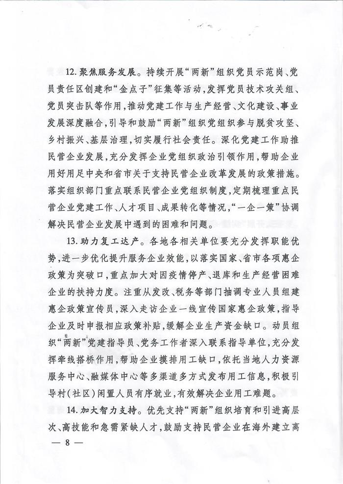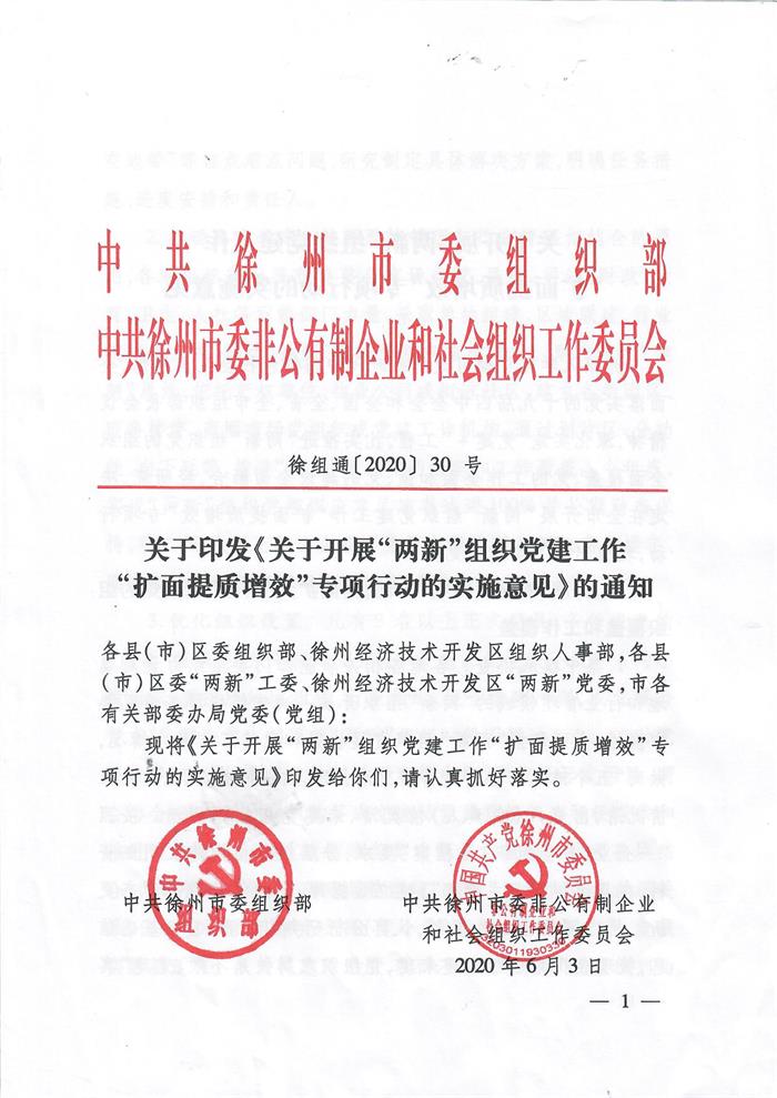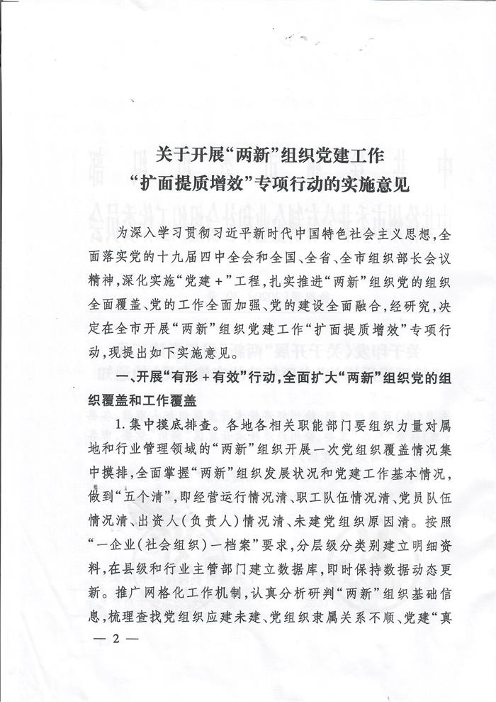 關于印發(fā)《關于開展“兩新”組織黨建工作“擴面提質增效”專項行動的實施意見》的通知