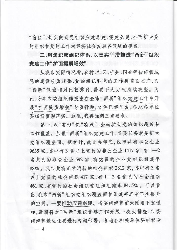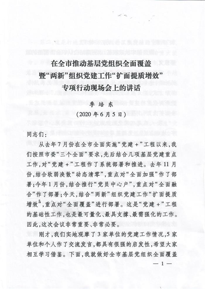 在全市推動基層黨組織全面覆蓋暨“兩新”組織黨建工作“擴面提質增效”專項行動現(xiàn)場會上的講話