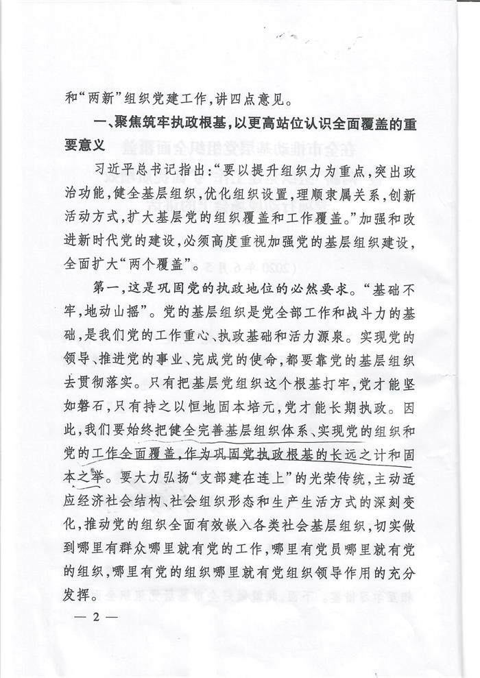 2020年6月5日下午,集團黨委領導代表參加了全市推動基層黨組織全面覆蓋暨“兩新”組織黨建工作“擴面提質增效”專項行動現(xiàn)場會。會上深刻學習了市委組織部、季培東部長講話文件精神?,F(xiàn)把兩份文件下發(fā)給你們,并認真學習貫徹文件精神。